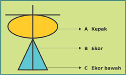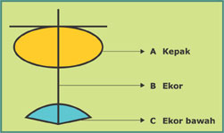 Gasing kite is made of four ripped sticks of bamboo; two sticks for kepak, a stick for batang, and another for ekor.