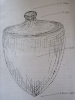 • the head, the upper part of gasing, shaped like a tea cosy and its neck