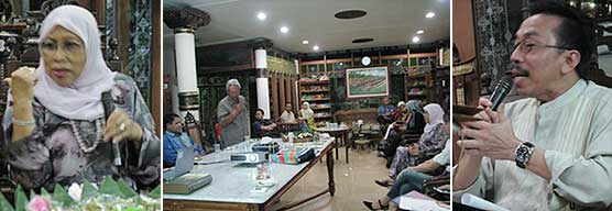 They came to BKPBM at 4 p.m. and were welcomed cordially by the Head of BKPBM, Mahyudin Al Mudra and some BKPBM‘s crews. Amongst the entourage were Prof. Dr. Noriah binti Mohamed – a senior research fellow of UKM, Prof. Madya Dr. Rosnah Baharudin, Prof. Dr. Haron Daud, Dr. Misran Rokimin, Dr. Mawar Syafii, and Dr. Hanapi Dollah. Familiar atmosphere was created during the meeting and some small laughs appeared among the participants.
