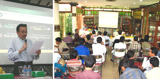 The end of the day`s event was a tumpeng (yellow rice served in a cone shape) cutting ceremony. Indeed, January 20th, 2009 precisely coincided with the first anniversary of RajaAliHaji.com. Before closing the anniversary celebration, Mahyudin wished that RajaAliHaji.com could stay enlightening the people, as the website`s slogan the Living Malay Wisdom.