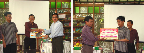 The second runner up, Israr Iskandar, was entitled to IDR 5,000,000 by PSSAT-UGM. Iskandar is currently serving as a lecturer at the University of Andalas, Padang, West Sumatra. The third runner up, Siti Nurhidayah, was rights for IDR 3,000,000 from Mr Andarjati.