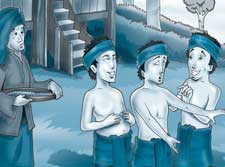 Après avoir écouté l‘histoire de Bujang Buta, les trois animaux apprirent pourquoi il était seul dans la forêt et ils s‘aperçurent que ce garçon était déluré. Alors ils lui donnèrent des outils.