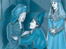 Après avoir dit la formule de séparation, Bujang Buta quitta la forêt et prit la route indiquée par les trois animaux qui lui mena vers le kampong. Tout au long de nuit, il marcha en prenant la direction comme il faut. Et puis il vit un kampong par distance. Il l‘approcha et y entra. Il aperçut une vieille dame qui était en train d‘arranger des fleurs, puis il bougea vers elle.