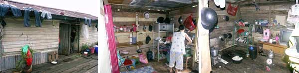 The crews spent several minutes to visit a Lanting house along the riverbank of the Kapuas River. The crews entered a house to observe the detail. In this 12-meter square house, living room, bed room, and kitchen are placed in a single room, no wall separating them. A pet living along with the owner makes the house seems dense.