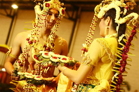 • Bunga-bunga berupa karang jagung tiga buah, sisir melati lima buah, dan bunga tangan.