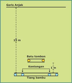 Peralatan yang digunakan dalam permainan ini adalah: (1) sebuah batu paklekbak (pelontar) untuk setiap pemain, yaitu sebuah batu yang bentuknya bundar dan agak pipih dengan diameter sekitar 6 cm yang banyak terdapat di sekitar pinggiran sungai; (2) dua buah batu tombon, yaitu batu-batu yang akan digunakan untuk menyangga sebilah bambu yang panjangnya sekitar 40 cm yang nantinya akan digunakan sebagai alas bagi bambu yang harus dikenai oleh batu paklekbak pemain; (3) satu buah kentongan untuk setiap kelompok yang berukuran panjang sekitar 45--50 cm dan diamater 15--25 cm.; dan (4) tiga batang bambu, yang dua diantaranya berukuran panjang sekitar 1,5 meter yang akan digunakan sebagai penyangga bambu yang panjangnya sekitar 3 meter, sehingga membentuk seperti tiang gawang dalam permainan sepak bola. Tiang tersebut letaknya sekitar 1 meter dari batu tombon dan akan digunakan sebagai gantungan kentongan dari setiap kelompok.
