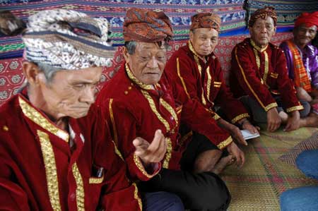 Para ketua adat memimpin pelaksanaan musyawarah adat untuk