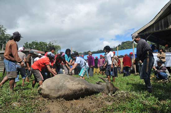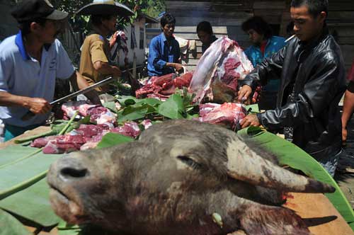 - Kerbau. Hewan ini disembelih setelah keputusan musyawarah ditetapkan. Tujuannya, sebagai pengikat kesepakatan adat.