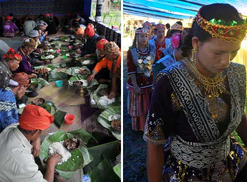 Acara Kapotia Nulibu Ada diakhiri dengan acara makan bersama dengan lauk daging kerbau (gambar kiri). Setelah selesai acara, para perempuan beranjak pulang ke rumah masing-masing (gambar kanan).