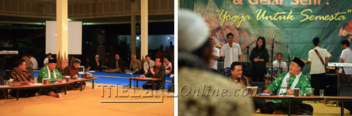 Yogyakarta, MelayuOnline - “Biarlah pemimpin menderita, asalkan rakyat sejahtera.” Ungkapan itu mengemuka dalam Dialog Budaya dan Gelar Seni Yogya Semesta di Pendapa Kepatihan Yogyakarta, Selasa (22/5). Dialog seri ke-41 kali ini mengangkat tema tentang kepemimpinan dengan menghadirkan narasumber antara lain: Drs. Bambang Purwoko, MA (Dosen Ilmu Politik, Fisipol UGM), KH M. Jazir ASP (pengamat sejarah nasional Indonesia), dan Benz Leo (wartawan musik), dan Ir. Drs. H. Bugiakso (Ketua Umum Nasional Forum Komunikasi Putera-Puteri Polri).
