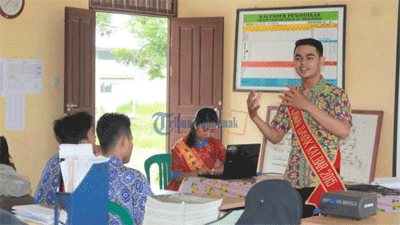 Melawi, Kalbar - Mengisi waktu libur semester, Bujang Gawai Kalbar 2015, Rinto Andika bersama bujang dara gawai kabupaten Melawi melakukan sosialisasi tentang sadar wisata dan bahaya narkoba kepada para pelajar di Kabupaten Melawi.