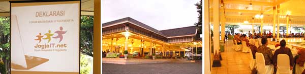 Pada kesempatan ini, Gubernur DIY, Sri Sultan Hamengku Buwono X, menjadi saksi dideklarasikannya FMIT Yogyakarta dan menerima buku Profil FMIT Yogyakarta dari Frans Budiono. "Pada tahun 2015, diharapkan 50% lebih dari penduduk Indonesia dapat mengakses internet. Oleh karena itu, Forum Masyarakat IT Yogyakarta harus solid," ujar Sultan dalam sambutannya. Beliau menambahkan, kesolidan forum seperti ini di kemudian hari dapat mendukung terciptanya masyarakat Jogja yang melek internet. Sehingga, melalui FMIT Yogyakarta, gagasan untuk mengemas dongeng dan cerita lokal dalam versi digital sebagai salah satu materi ajar pendidikan di wilayah DIY, proyeksi DIY sebagai Jogja Cyber Province, dan peningkatan kesejahteraan masyarakat melalui ekonomi kreatif dapat terwujud.