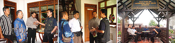 Yogyakarta, MelayuOnline.com— Rabu pagi (17/12) Balai Kajian dan Pengembangan Budaya Melayu (BKPBM) menerima kedatangan tamu dari Jurusan Siasah Syar‘iyyah, Universiti Malaya (UM), Malaysia. Rombongan tersebut terdiri dari Kepala Department of Siasah Syar‘iyyah, Dr. Bharuddin Che Pa, dan tiga orang peneliti yakni Amin Hari Susanto, Raja Hisyamudin Bin Raja Sulong, dan Afriadi Sanusi. Kedatangan para tamu dari negeri jiran ini untuk melihat langsung aktivitas di BKPBM, berdialog, dan saling tukar informasi. “Kami sering membuka MelayuOnline.com, dan melihat bahwa website ini sangat menarik. Ketika datang ke BKPBM, kami melihat sendiri bahwa lembaga ini memang sangat serius untuk mengkaji dan mengembangkan budaya Melayu,” tutur Dr. Bharuddin.